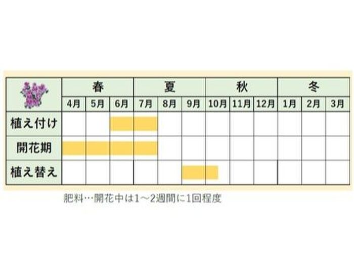 もし、花壇に植える場合は、花が咲く時期に雨に当たると、花が痛み、花が下に垂れてしまうことがあるので、雨対策をしっかりしましょう。また、夏の西日を避けるために日よけを施してあげることも大切です。加湿に弱いので、水の与えすぎには注意し、乾燥気味で管理をし、水やりも葉と花をよけて与えてください。