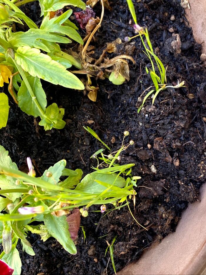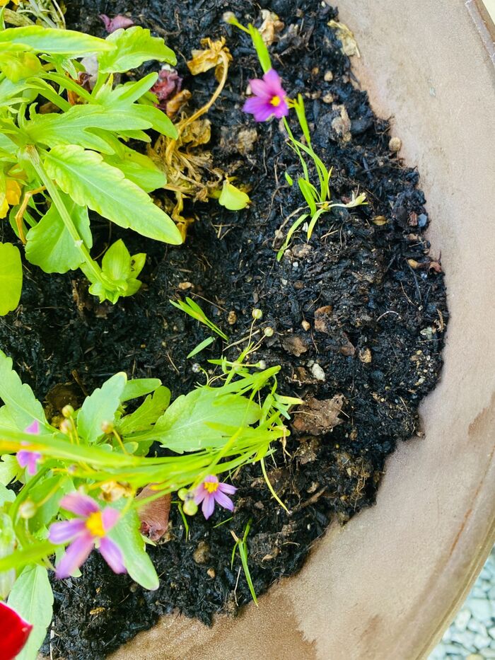 芝草の上に咲いていたので、芝刈りの際、刈ってしまっては可哀想と思い寄せ植えしました。