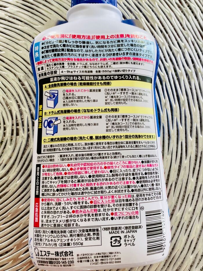 200円で、簡単に洗たく槽がメンテナンスできるので楽ちんですよ。