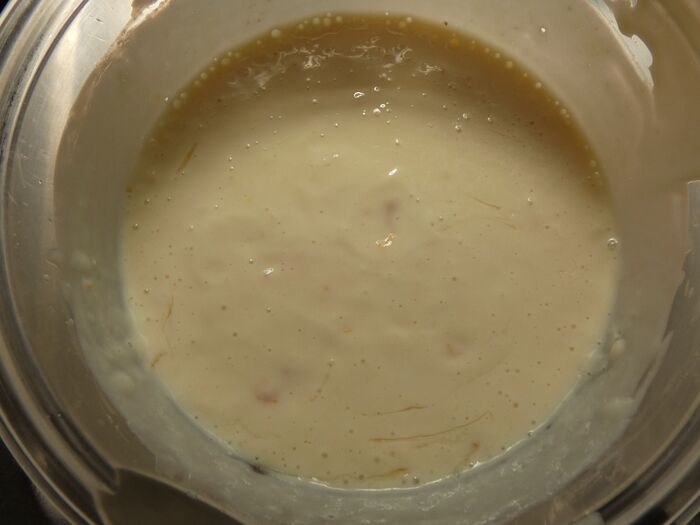 豆腐をボウルに入れて、なめらかになるまでよく混ぜ合わせます。