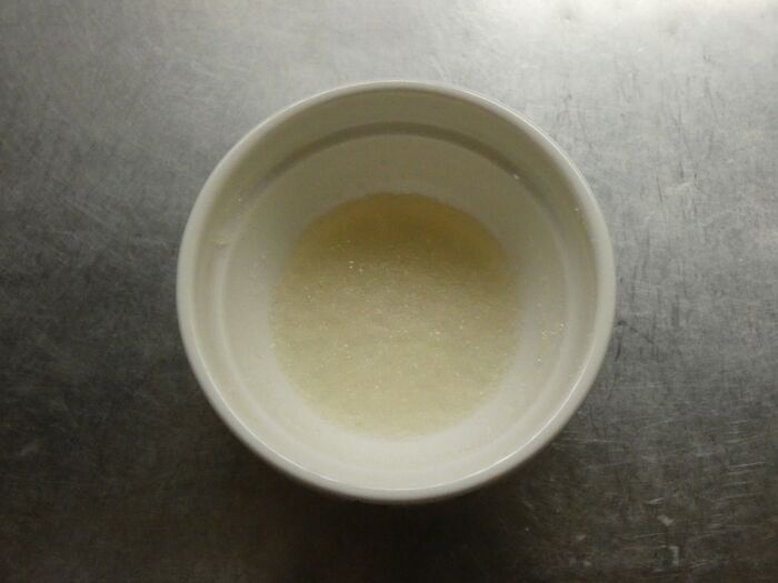 ゼラチンを電子レンジ600Wで20~30秒温め、混ぜ合わせます。