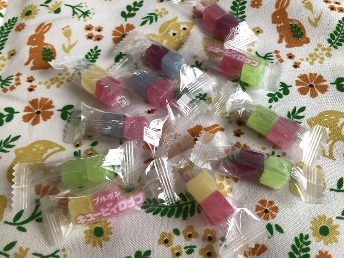 キュービィロップはサイコロのような形をした飴が1袋に2つずつ入っています。