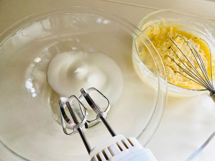 卵白を角が立つまでよく混ぜます。