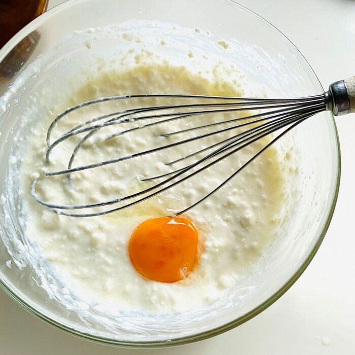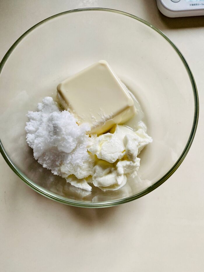 ボウルに、絹豆腐、砂糖、ヨーグルトを入れよく混ぜます。