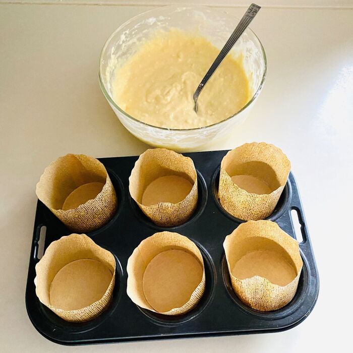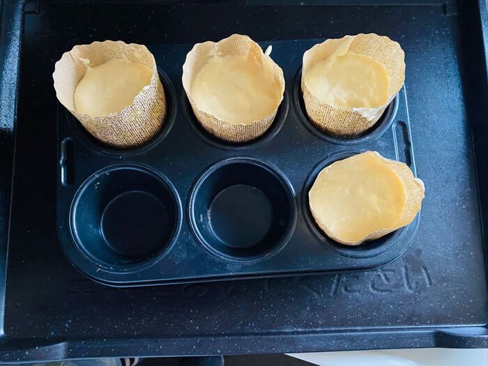 マフィン型に入れます。