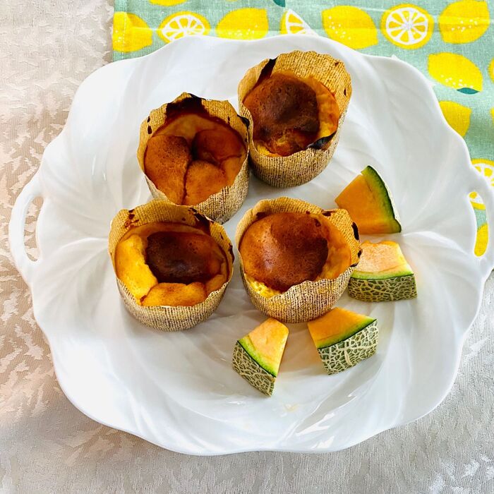 そのままでも、食べやすいようにマフィン型を外して器に添えてもOKですよ。