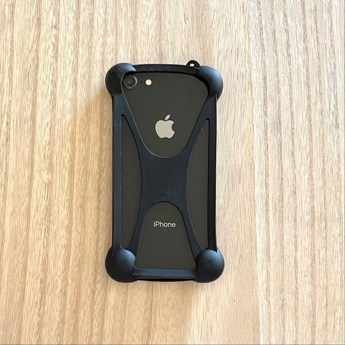 現在使用しているスマホは、iPhone13ミニですが、これをバンパーにはめてしまうと、ウチには撮影ツールが無いため、iPhone8をサンプルとしてはめてみました。
