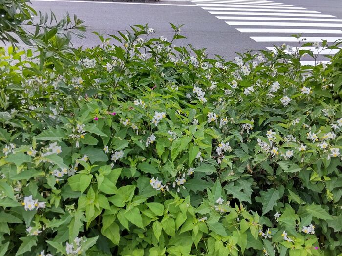 実ったトマトは、熟すとトマトに似ていて、じゃが芋の芽に含まれる「ソラニン」という毒を含んでいます。 食べると家畜が中毒死することもある、危険な植物なんです(全草に毒を持っています)。人間はよほどの量を食べない限り死には至らないそうですが、注意にこしたことはない雑草なんです。