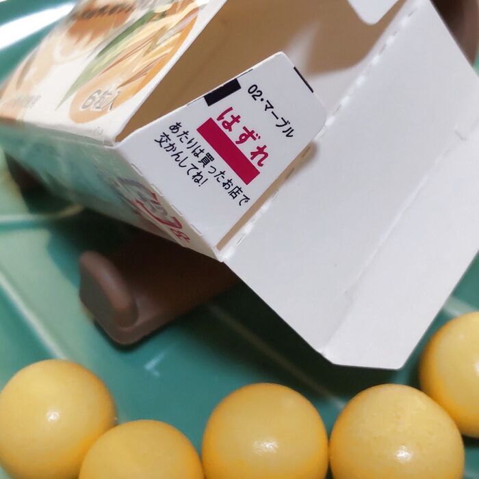 見てください!中のフーセンガムも丸くて、淡いオレンジで可愛いんです!6個入りなんです。
