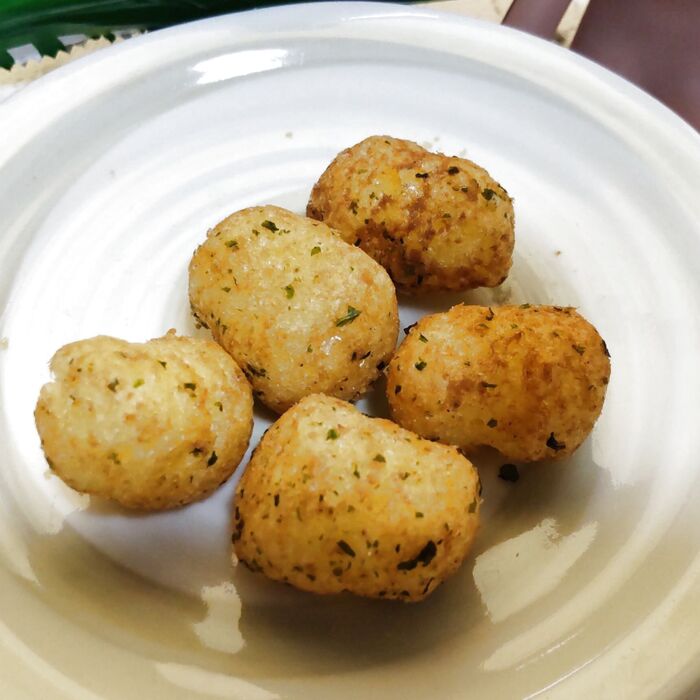 このような丸いスナック菓子です。軽いのでいくらでも食べれちゃう。大人になった今は、ビールのおつまみにも良さそうなお味です。お酒が進むお味です。