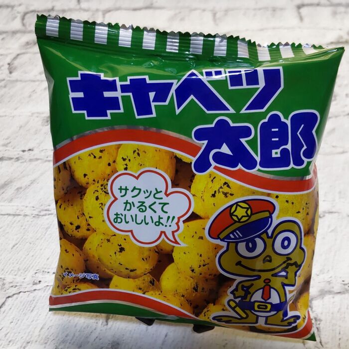 こちらのお品は「キャベツ太郎」です。サクッとしたスナック菓子で、やみつきになるお味なんです。子供の頃、よく食べた記憶のあるお菓子です。ソースと調味料が濃いめで、とても美味しいんです。