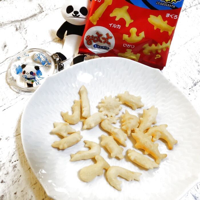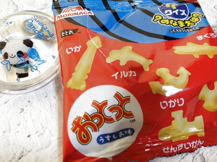 こちらは「うすしお味」で、うみのなかまたちを中心に、可愛い形のスナック菓子が入っているんです。