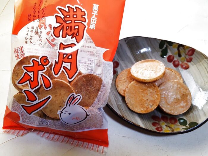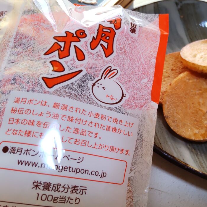 本品は定番の味なのですが、濃い味の満月ポンもあるんです(醤油たっぷりですよ!)。