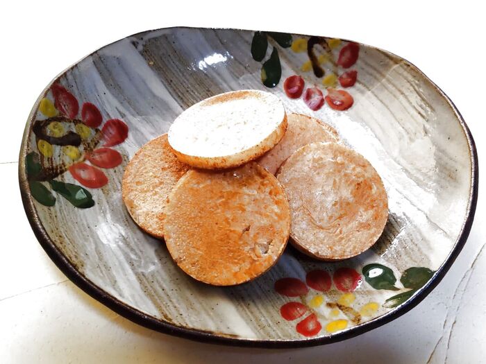 満月の形をしていて、普通のお煎餅とは違う、ふっくら感とザクザク感のある焼き菓子なんです。