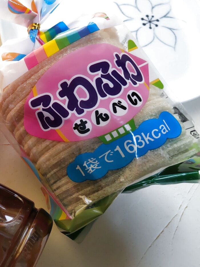 このように薄いお菓子なんです。本品には43gも入っています。1袋をひとりで全部食べる事はないと思いますが、1袋食べたとしても、たった163キロカロリーなんです。
