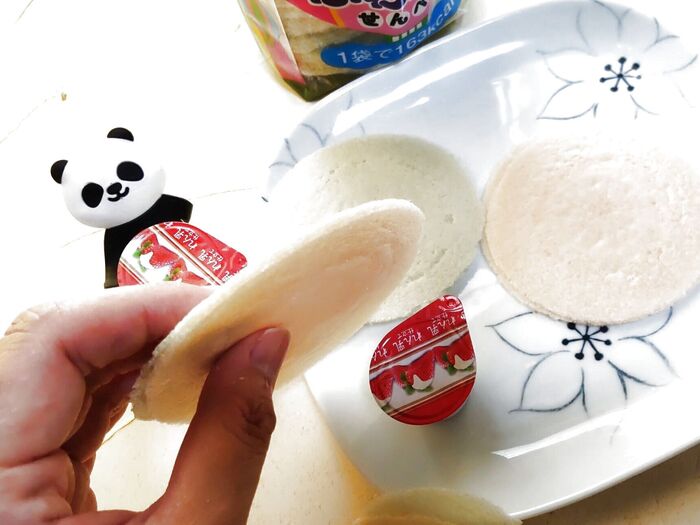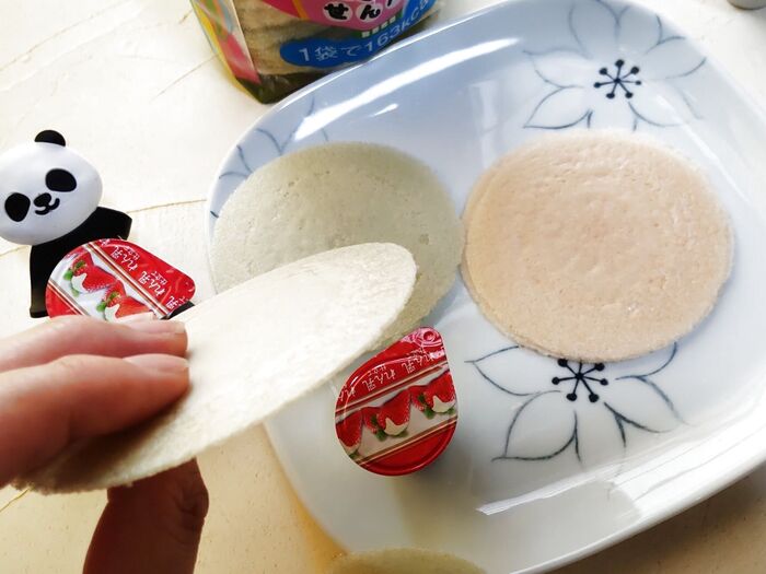 練乳やジャムを挟んで食べる食べ方は、ふわふわせんべいのパッケージ裏にも、美味しい召し上がり方として紹介されていますよ。