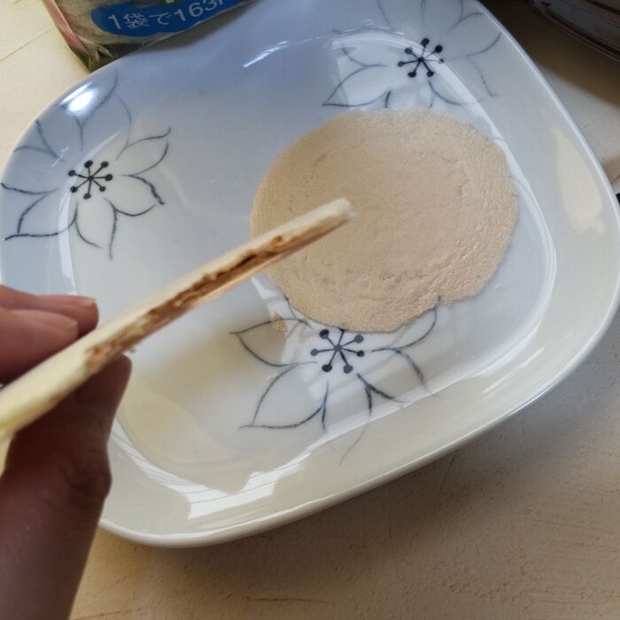 練乳もソースもどちらも、ふわふわせんべいにとても合います。
