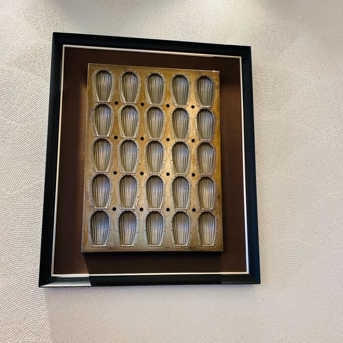 店内の壁には、マドレーヌ型が飾られていますよ。