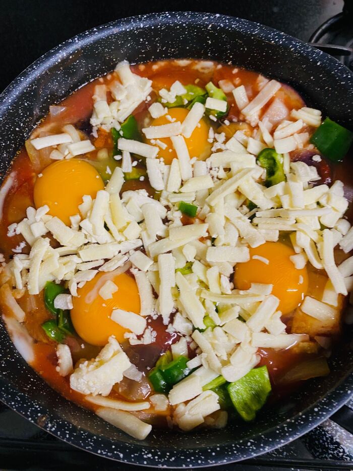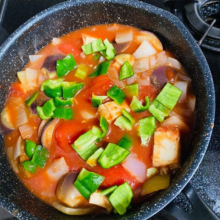 蓋をしてチーズが溶けるまで、弱火にして煮込みます。
