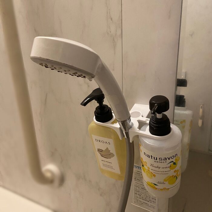 シャンプーやコンディショナー、ボディソープなど、浮かせて収納できますよ!