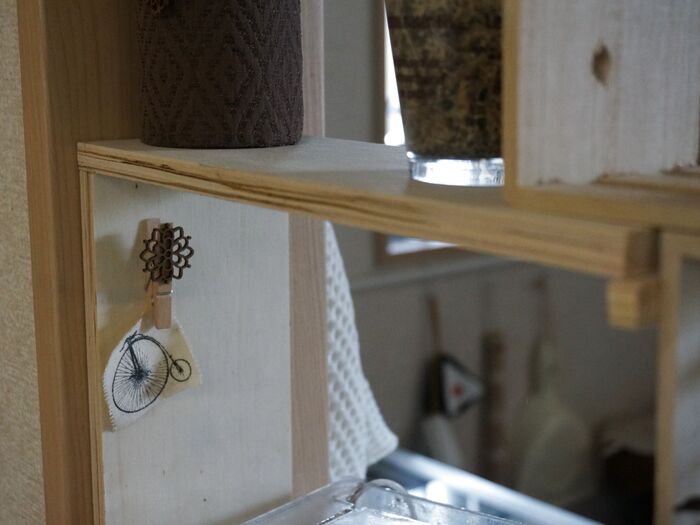 底の板を外したことで、圧迫感がなく、機能的な棚になりました。