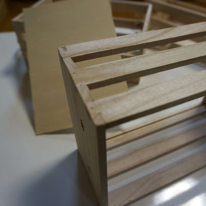 私は、切って箱を少し小さくしました。切った所には、外した底のベニヤやダイソーで売っている木の幅がちょうど良いので、それを使い補修します。