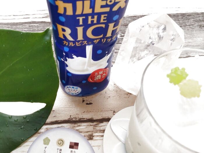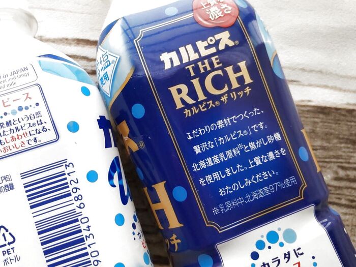 スッキリした甘さを控えめにしている「カルピスウォーター」の対極的な商品である、「カルピス ザ リッチ」。北海道産乳原料を贅沢に使用していたり、焦がし砂糖を使用しているそうですよ。