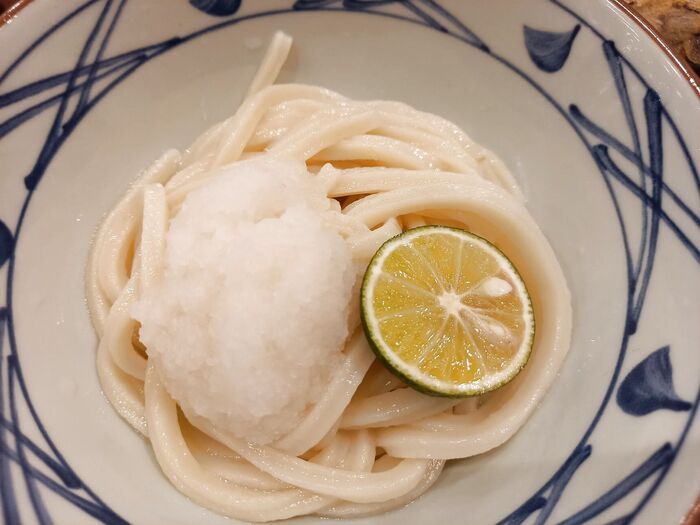 冷たいうどんに、真っ白な見た目が涼を誘う大根おろしと、