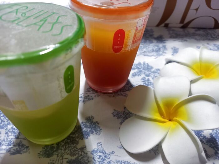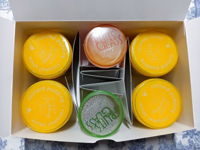 箱をあけると、カスタードプリン(330円)とフルーツグラスゼリー(270円)♪
