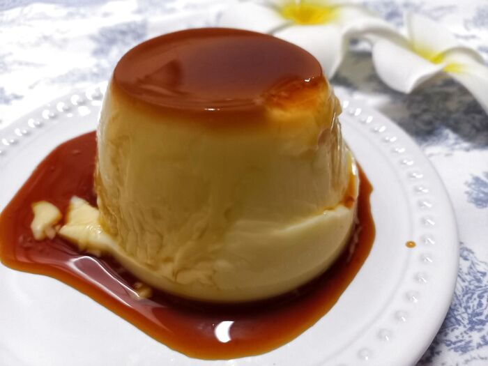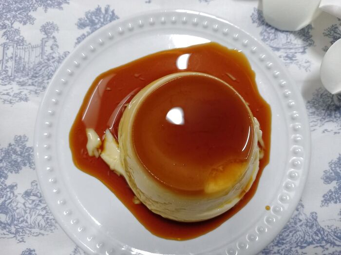 透明のぷっくりと可愛いガラス容器に入ったカスタードプリンです♪