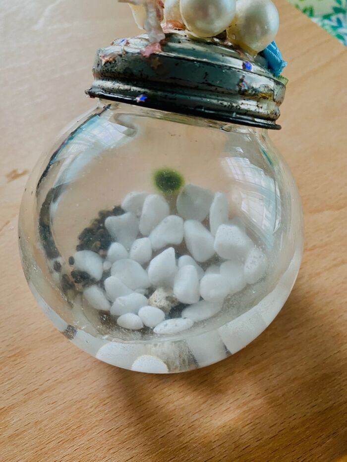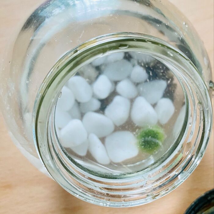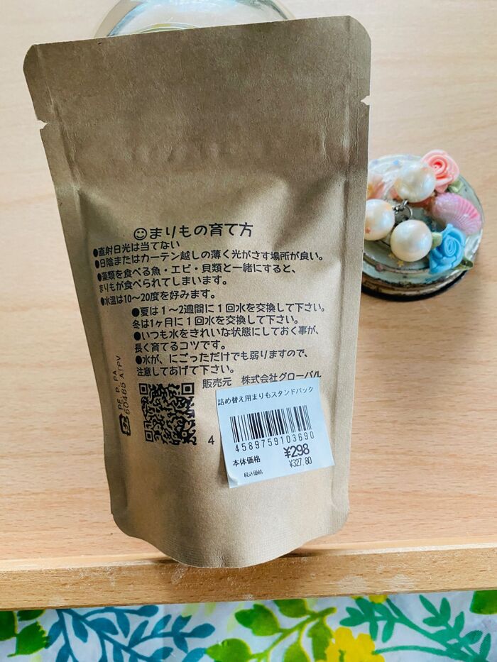 店頭で買ってきたまりもを蓋付きの容器に入れます。