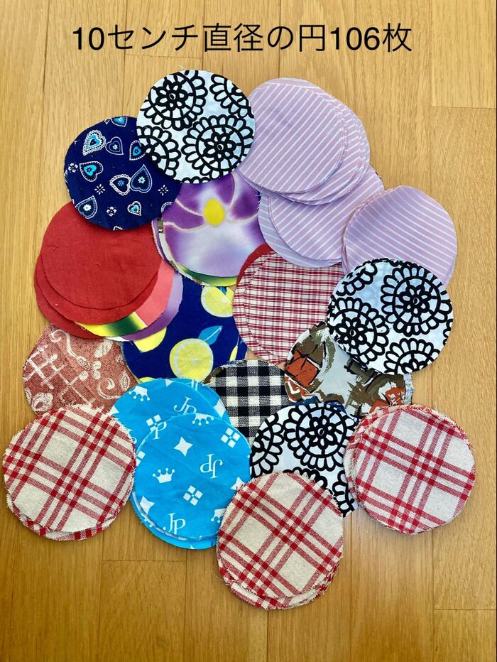 色も大きさも不揃いですが、ヨーヨーキルトが作れる大きさがあれば使えます。