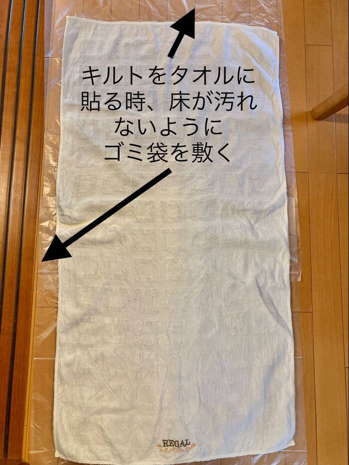 ゴミ袋の大きさにもよりますが、バスタオルの下に敷いて、ボンドが床などに付かないようにするため、2〜3枚あると良いと思います。