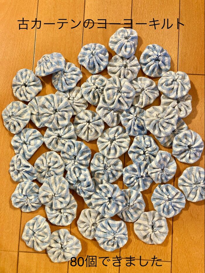 捨てても良いような、黄ばんだカーテンと、ゴワゴワのバスタオルも、ヨーヨーキルトのマットにすることで甦り、大切な思い出の品になりました!