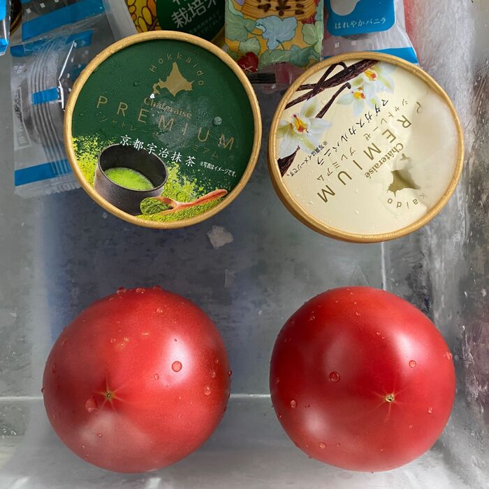 トマトはサッと水洗いし、冷凍庫に3時間ぐらい入れます。