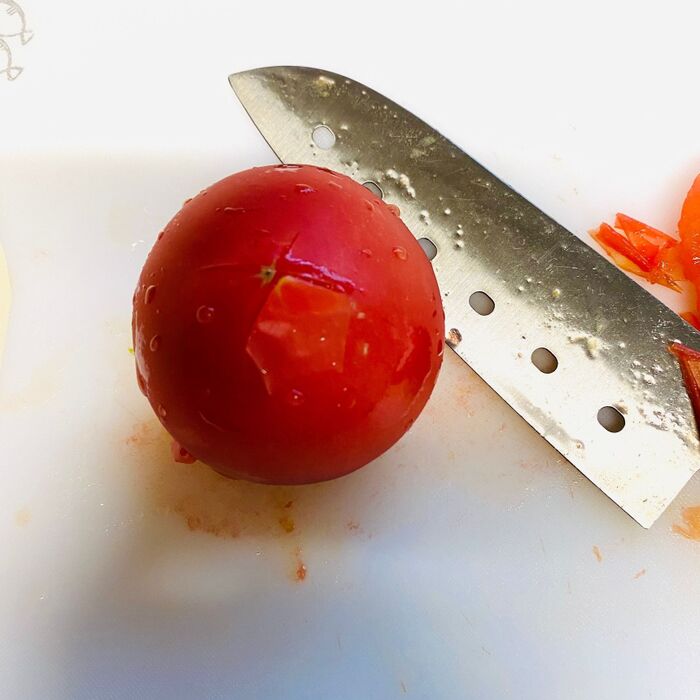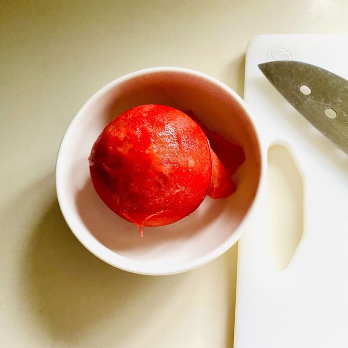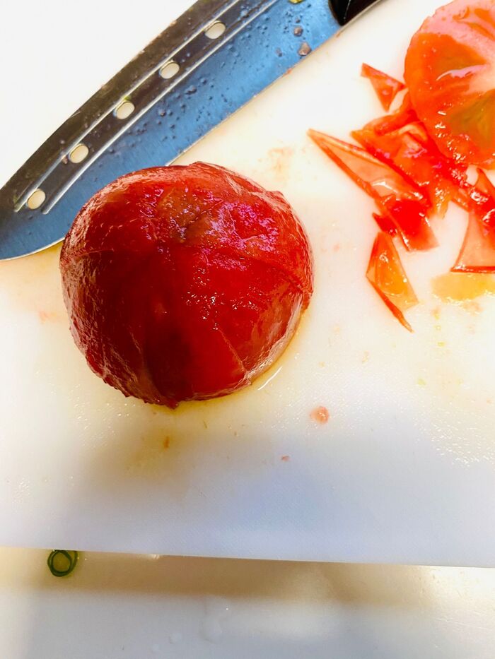 トマトを凍らせてから剥くと、皮が簡単に剥けますよ。