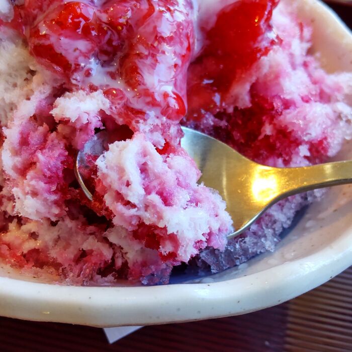 かき氷は、ふわふわタイプでなくて、昔ながらのかき氷タイプで、氷感を感じますよ。