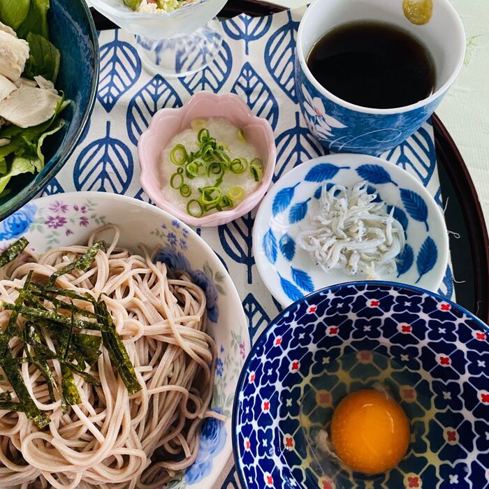 長芋、しらす、卵を混ぜ麺つゆで食べるおそば