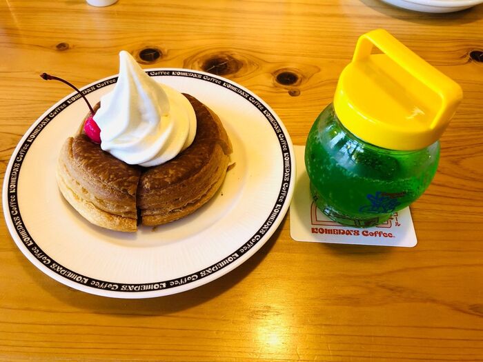 なので、小3の息子はこのサイズでも十分なんだそうですが、モーニングタイムに来た時はせっかくなので、通常サイズのメロンソーダを注文しています。