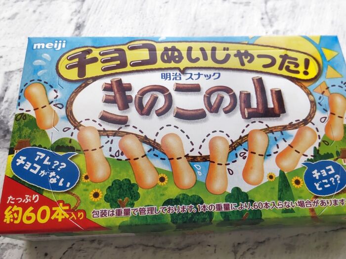 ネーミングがとにかく可愛いー!「チョコぬいじゃった!きのこの山」。箱のイラストも、分かりやすくて面白くて◎!