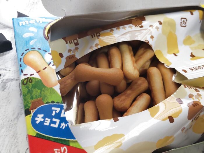 「きのこの山」のクラッカー部分だけが入っているんです、クラッカーは通常の「きのこの山」の約2倍となる約60本も入っているんです。