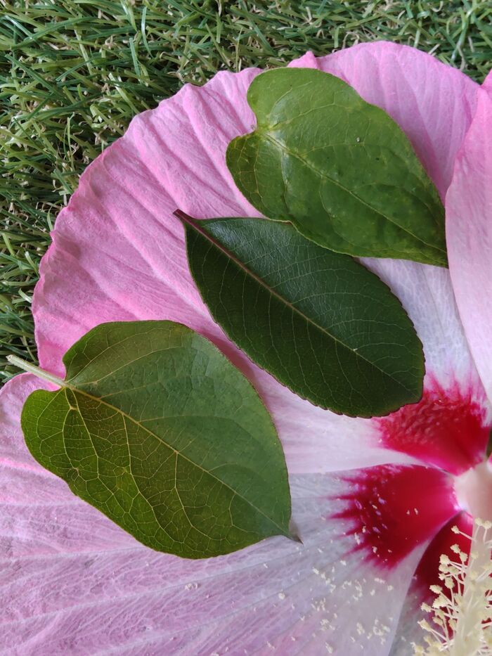 葉は楕円形で付け根付近はハート型に近く、先が尖っているのが特徴。