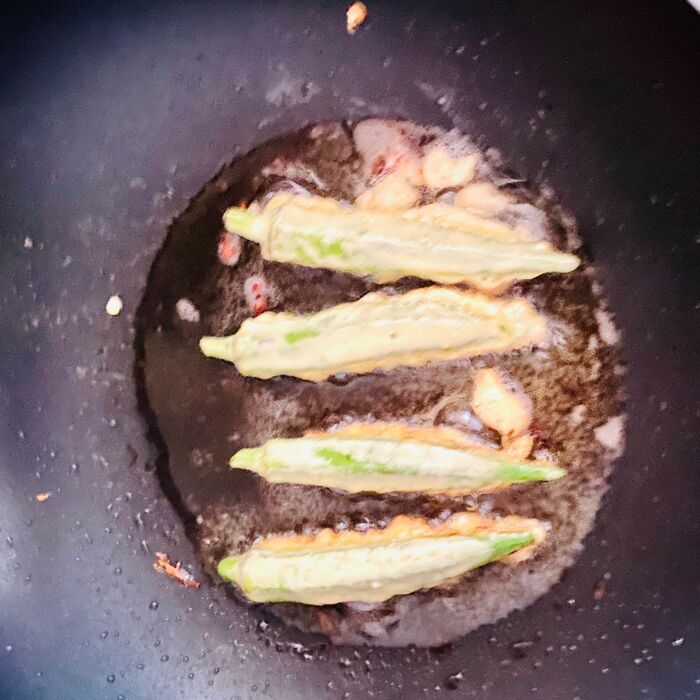 オクラフリッターを詰めました。