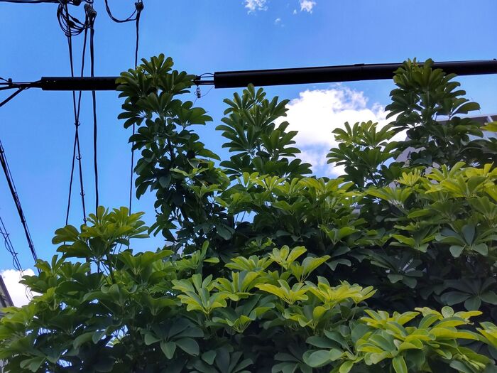 20年経っても青々とした葉を炎天下でも茂らせ、凄い生命力です。20年経たないと、花が咲かないんですね。だから花を見る機会ってあまりないんですね。