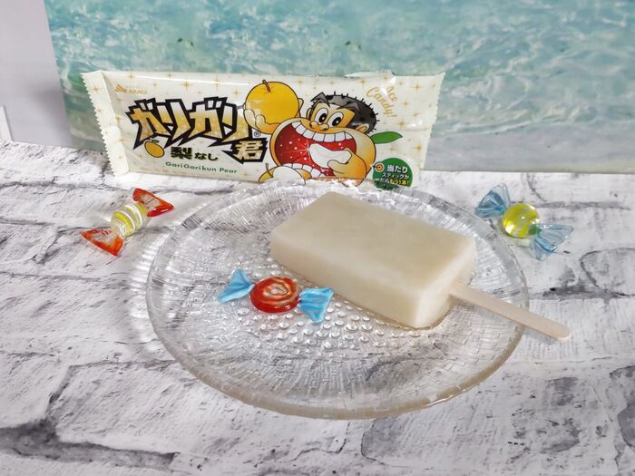 かき氷を食べているような氷感がありますよ。凄いのが、本物の梨の風味もするんです。喉の渇きも癒してくれます。暑い夏に、お勧めですよ。