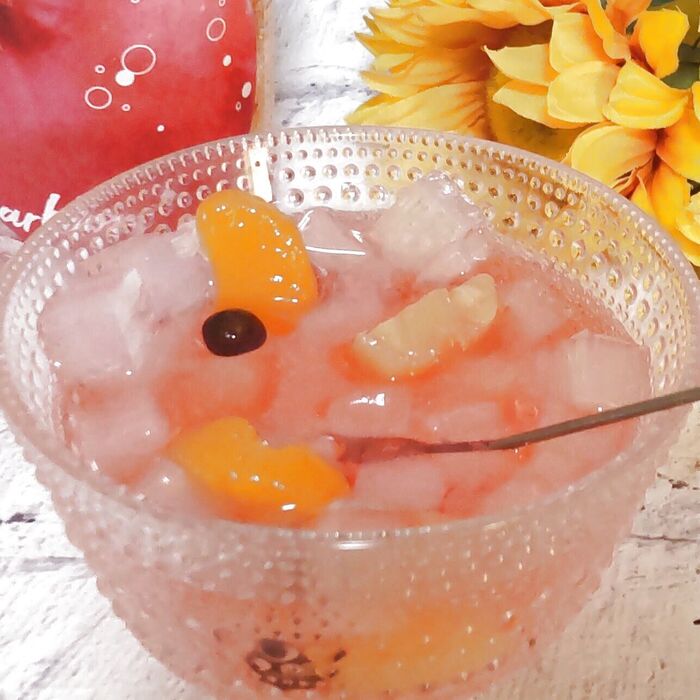 みかんやパインや豆もシロップ漬けになって入っていましたので、そちらも加えています。