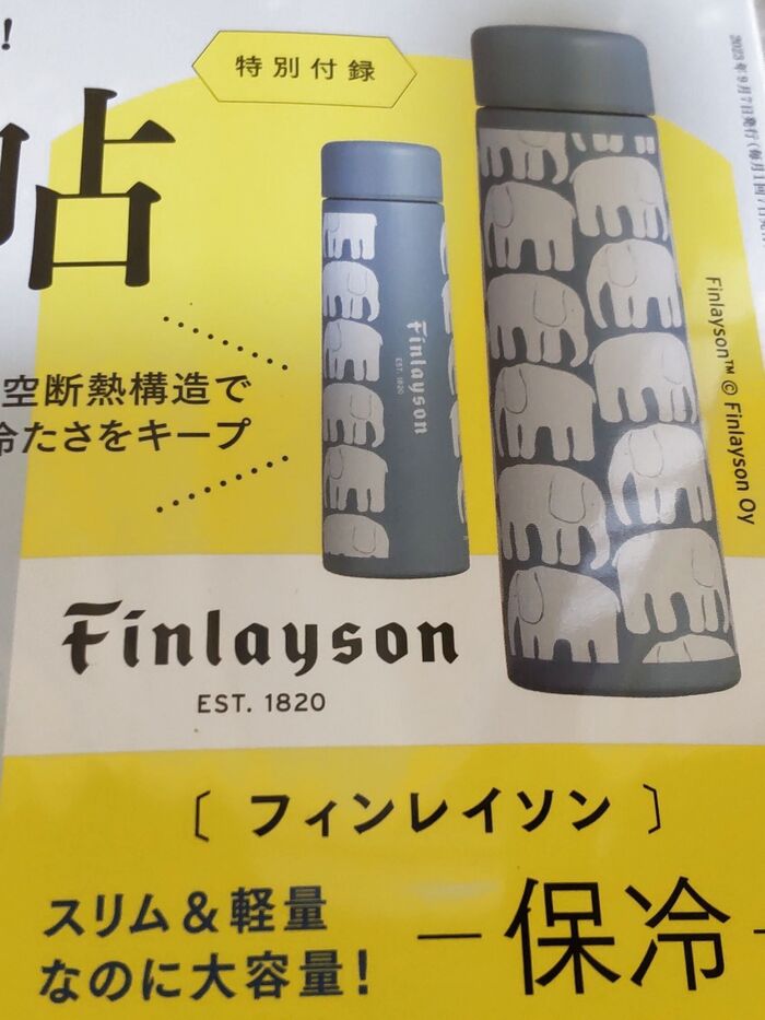 フィンランドの最古のテキスタイルブランド「フィンレイソン」の、一番人気の『象』モチーフを用いた、保冷ステンレスボトルです。