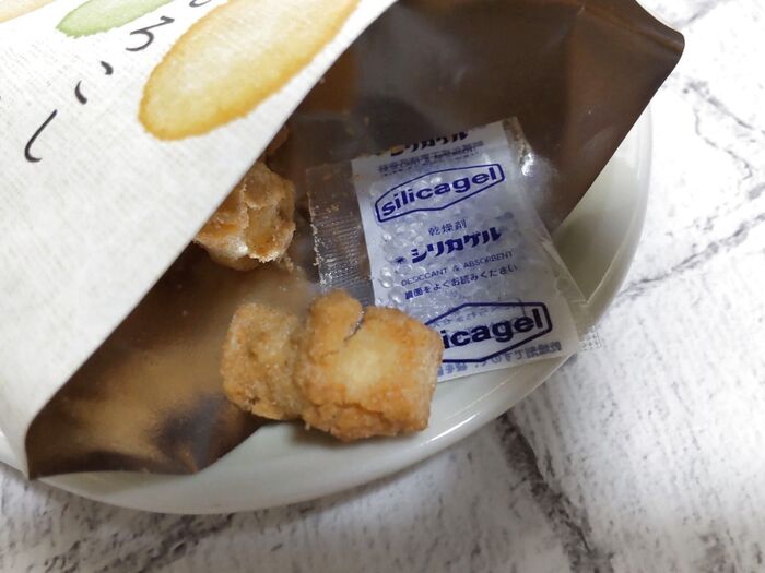 乾燥剤も、1個入っていましたよ。揚げ餅はカラッと感は大切ですものね。