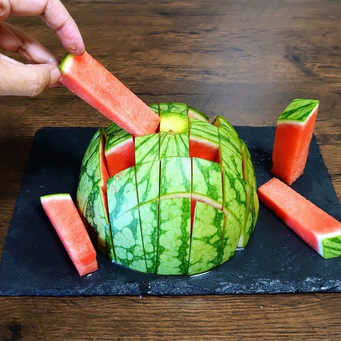 カットしにくいですが、半分にカットせず丸ごとカットすると、長いのが出来ますヨ