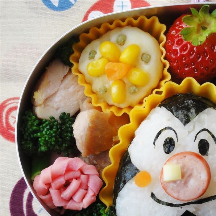 おかずはつかんで食べやすいものを中心に少しデコすると子どもも喜びます。喜んだついでに勢いで苦手なものも食べたりすることも♪